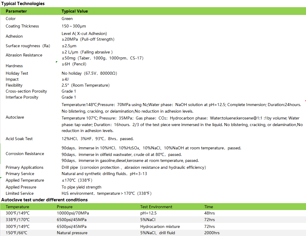 Primary ApplicationsDrill pipe(corrosion protection 、abrasion resistance and hydraulic efficiency).