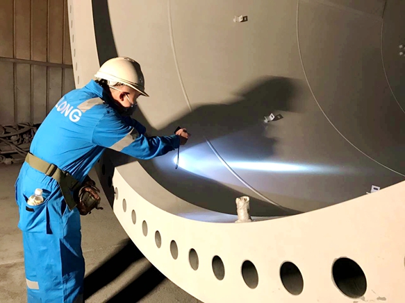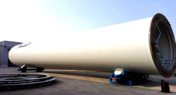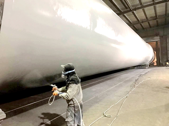 圖2:塔筒外部噴涂現(xiàn)場