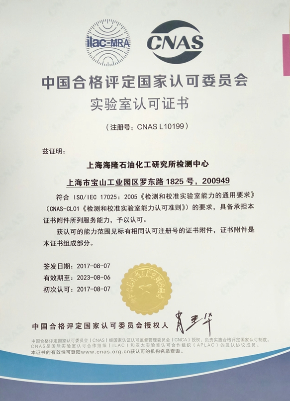 (2017年9月11日,上海)上海海隆石油化工研究所順利通過中國合格評定國家認(rèn)可委員會(CNAS)現(xiàn)場評審,于近日正式獲得CNAS認(rèn)可資格證書(注冊號:CNAS L10199)。該證書的獲得表明化工研究所已建立了比較完善的管理體系,能夠滿足《檢測和校準(zhǔn)實驗室能力認(rèn)可準(zhǔn)則》的要求;同時標(biāo)志著化工研究所出具的報告,具備了在全球53個國家和地區(qū)相互承認(rèn)的資格.